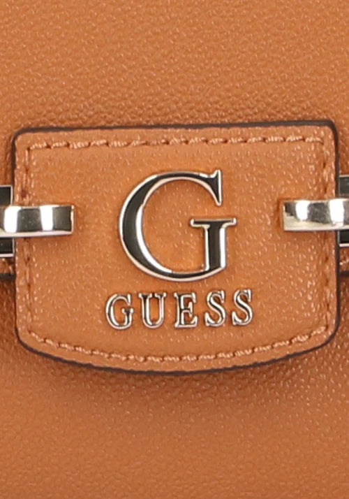 Design: Structured satchel silhouette with Guess logo and gold-tone hardware