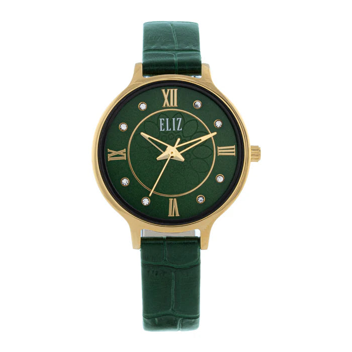 The ELIZ ES8909L1GEE Women’s Watch is a perfect combination of elegance and everyday functionality. Featuring a stainless steel caseback and a premium leather strap, this timepiece offers a sophisticated yet comfortable fit. The classic 3-hand dial ensures accurate timekeeping while maintaining a clean and timeless design.