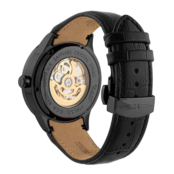 Exude sophistication with the BLADE Sempre Noir 3704G1NNN Automatic Men's Watch, a perfect fusion of modern design and classic elegance. This timepiece features a sleek black dial paired with a stainless steel case and a comfortable leather strap, offering a refined look for every occasion. Powered by automatic movement, it ensures precise timekeeping without the need for batteries, combining style and functionality effortlessly. Ideal for formal, business, or casual settings, the BLADE Sempre Noir is a statement of timeless elegance.
