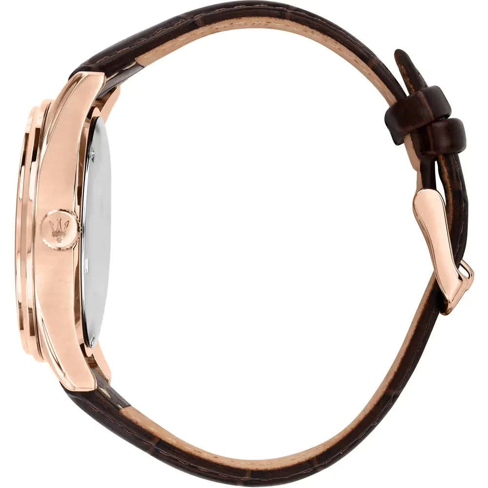 Powered by a reliable automatic movement, the watch ensures smooth, precise timekeeping while reflecting Maserati’s commitment to craftsmanship. Its black leather strip bracelet enhances durability and adds a contemporary, polished look, making it suitable for both professional settings and casual wear. The Sorpasso combines sporty aesthetics with timeless luxury, capturing the essence of Maserati design.
