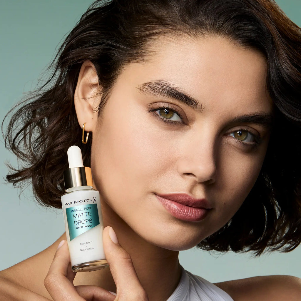 Achieve a flawless, shine-free complexion with Max Factor Miracle Pure Matte Drops Serum Primer 30ml. This lightweight, skincare-infused primer is designed to instantly mattify the skin while minimizing the appearance of pores, fine lines, and imperfections. Enriched with active ingredients, it controls excess oil throughout the day, ensuring your makeup stays fresh and long-lasting. The silky serum texture glides smoothly onto the skin, leaving a soft-touch finish that enhances foundation wear and boosts your natural radiance. Perfect for normal to oily skin types, this multitasking primer combines the benefits of skincare with the performance of professional makeup.