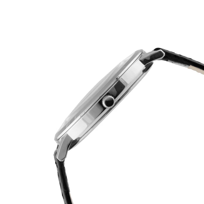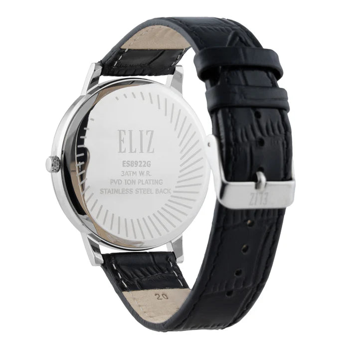 ELIZ ES8922G1SSN SS Caseback & Leather Strap Date Men's Watch