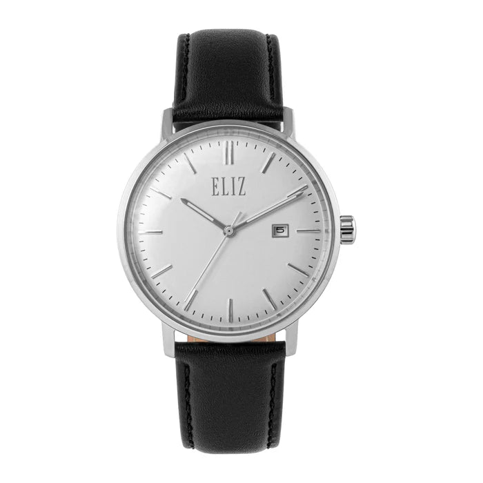 ELIZ ES8950G1SWN SS Case & Leather Strap Date Men's Watch