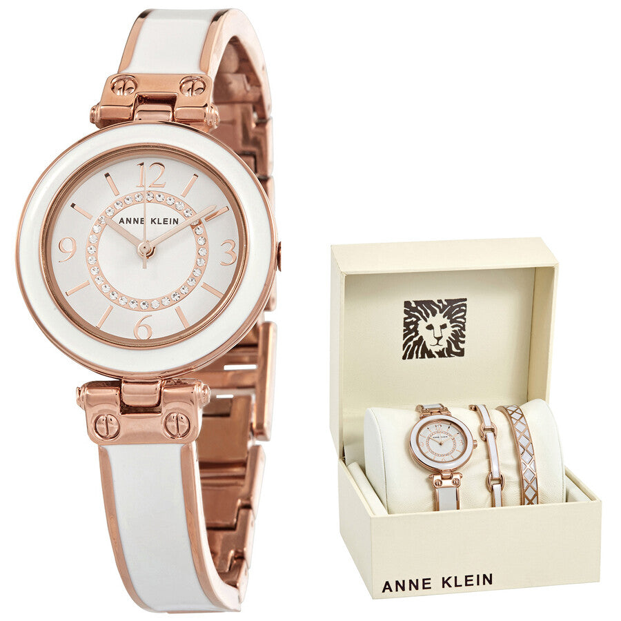 Add a touch of refined elegance to your wardrobe with the Anne Klein Quartz Glossy White Ladies Watch and Bracelet Set (AK/3296WTST). This exquisite set features a sleek, glossy white watch paired with coordinating fashion bracelets, creating a harmonious look that is perfect for any occasion.