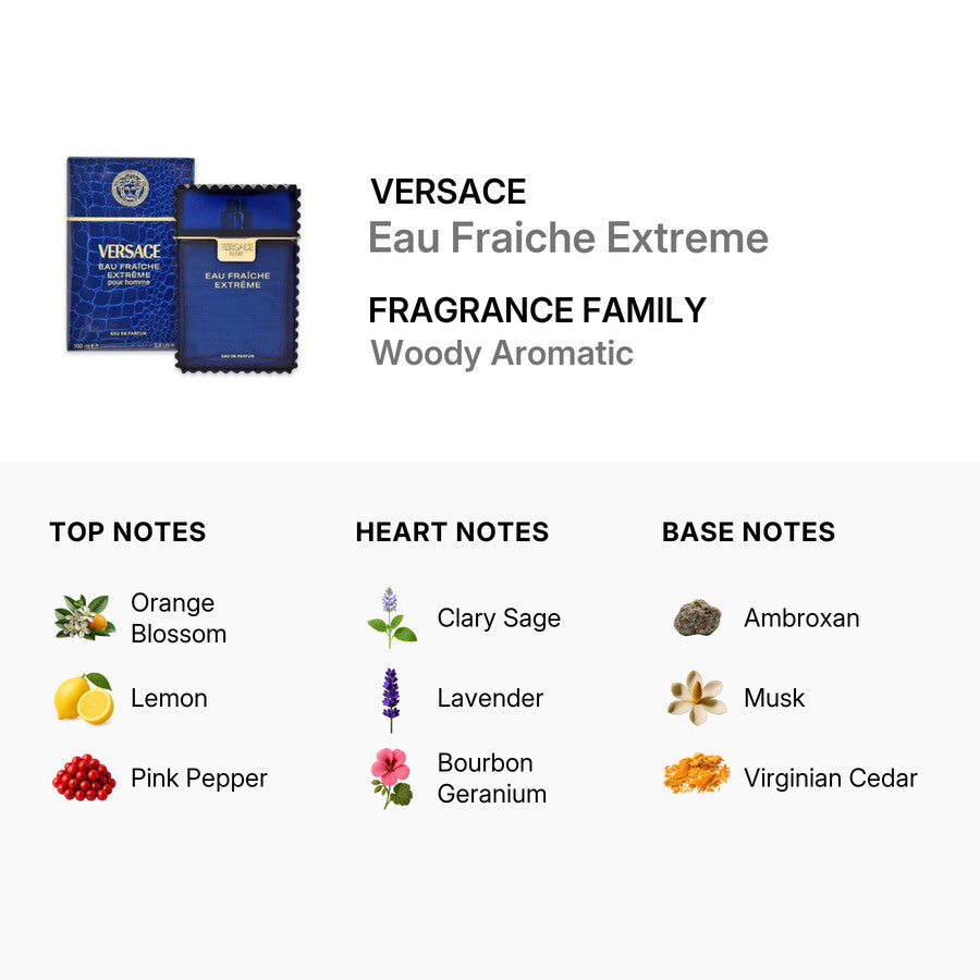 Discover a more intense and refined expression of freshness with Versace Eau Fraîche Extrême Pour Homme EDP. This powerful yet elegant fragrance elevates the iconic Eau Fraîche DNA with deeper aromatic notes and long-lasting sophistication. Designed for the modern man who embodies confidence, style, and effortless charisma, Eau Fraîche Extrême is perfect for both daytime wear and evening occasions.