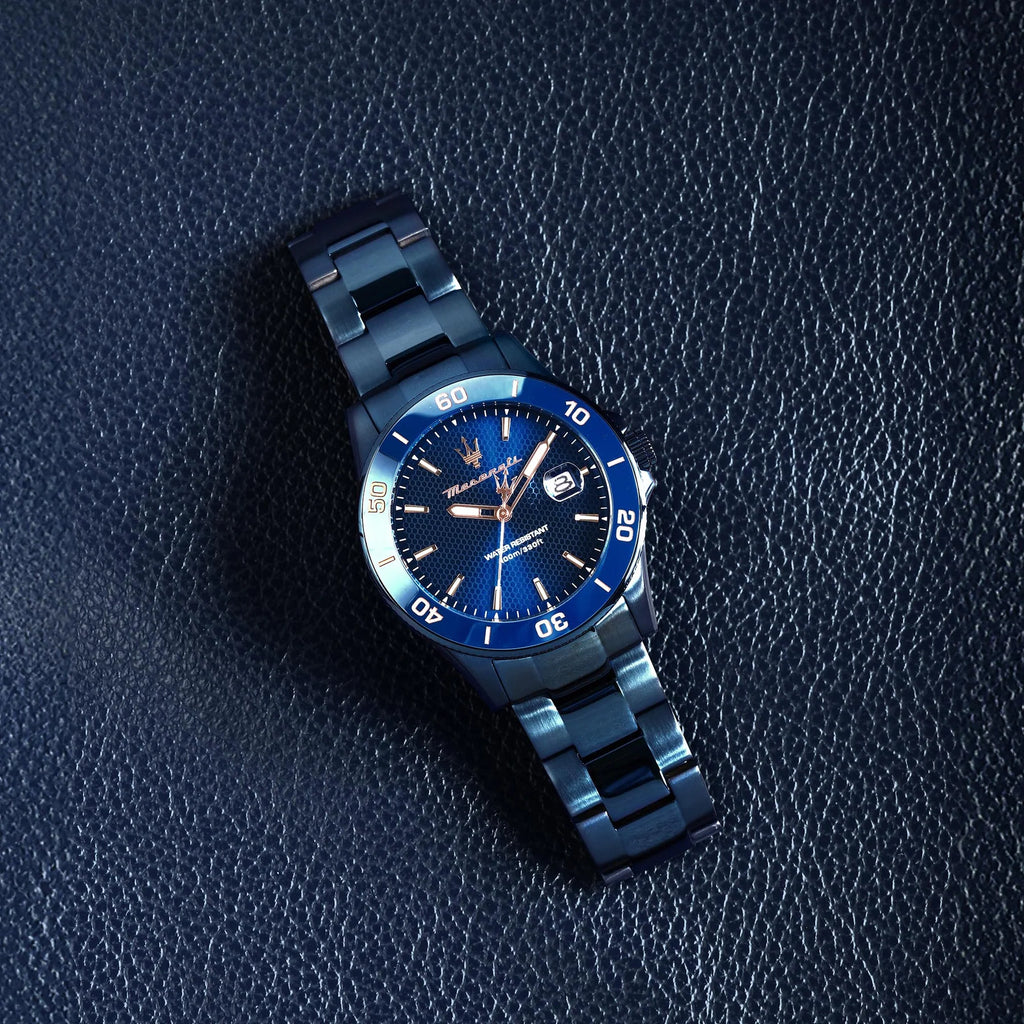 Powered by a 3-hand (3H) movement, it ensures reliable and accurate timekeeping for daily wear. The blue stainless steel bracelet complements the dial, providing durability and a sleek, polished finish. Inspired by Maserati’s racing heritage, the Competizione blends performance, luxury, and Italian craftsmanship in one versatile timepiece.