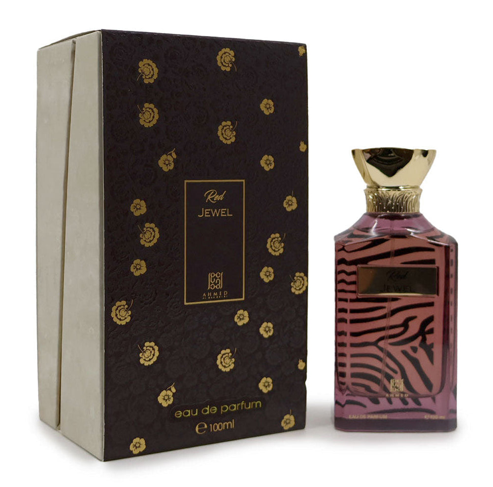 Ahmed Al Maghribi Red Jewel Eau De Parfum is a radiant and enchanting fragrance that reflects passion, elegance, and sophistication. This captivating scent opens with a sparkling blend of fruity and fresh accords that instantly uplift the senses. The heart blooms with a rich bouquet of florals, adding depth and femininity, while the base settles into a warm and sensual trail of amber, musk, and soft woody notes.