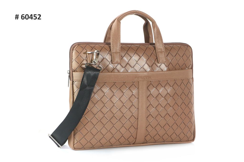 Upgrade your work essentials with the Nautica Intrecciato Leatherette Unisex Laptop Bag. Crafted from premium leatherette, this sleek and sophisticated bag features a unique intrecciato weave pattern, offering both style and durability. Designed for both men and women, it provides a perfect blend of elegance and practicality, making it ideal for professionals on the go. The spacious main compartment comfortably fits laptops up to 15.6 inches, while additional pockets keep your accessories organized. Whether you're commuting to work or traveling for business, the Nautica Intrecciato Laptop Bag ensures your devices stay safe, secure, and stylish. With comfortable handles and a detachable shoulder strap, this versatile bag is perfect for those who value both design and functionality.