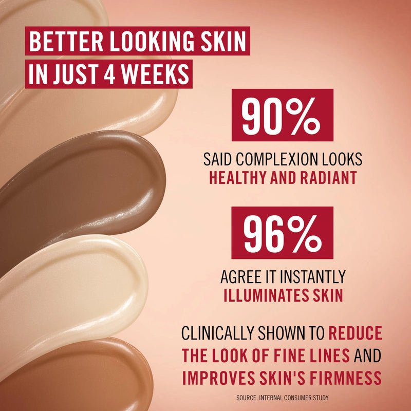 • Lightweight, blendable formula is infused with skin-loving ingredients like natural biopeptides and Vitamin C,